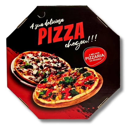 Essa caixa é perfeita para quem vende pizzas de 8 pedaços super recheadas e não quer se preocupar com o fundo da caixa cedendo. Com fundo de papelão de 420gr, essa caixa conta com tecnologia de fibras de celulose para garantir a maior resistência possível do papelão.